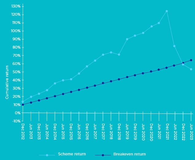 NAV/debt: Net asset value rose by 2.6% to 303p during the half year. This was achieved despite an increase in net debt to £70.8m (Dec 2022: £48.6m), reflecting spending on committed developments.