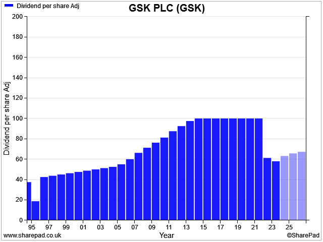 GSK's dividend was flat for nearly a decade before the Haleon spinout and often looked under pressure to me.