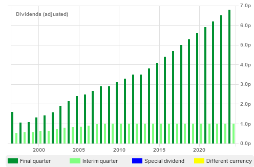 The company increased its full-year payout by 1.5% to 17.25p per share, marking its 20th consecutive year of growth.
