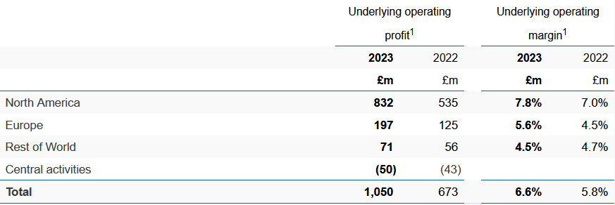 There's no breakdown of these sectors in today's results, but what's clear is that Compass's success is driven by its operations in North America. These are larger and more profitable than any other region and generated 80% of underlying profit during H1: