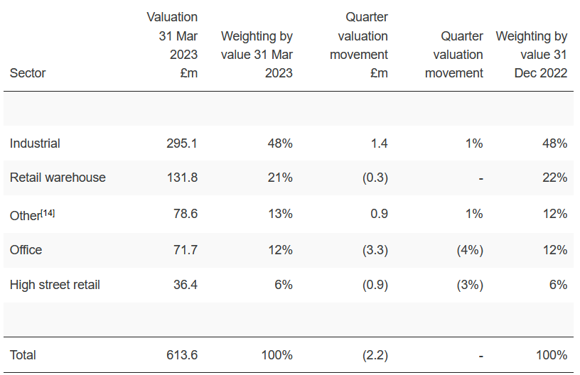 The latest portfolio breakdown shows around half of assets are industrial units, with the remainder split across classes.