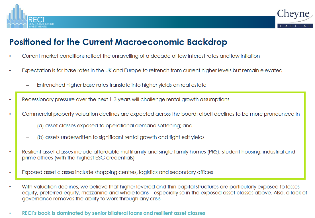 The business is externally managed by Cheyne Capital, a specialist real estate business with $5bn of real estate assets under management.