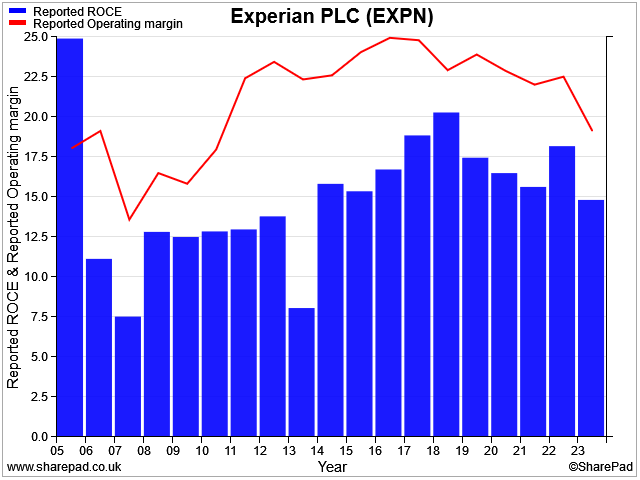 I prefer to look at statutory operating margin and returns on capital employed, as these include the company's sizeable amortisation charge on previous acquisitions. I view this as a real cost as it reflects past capital allocation decisions – so I want to see the returns on that spending.