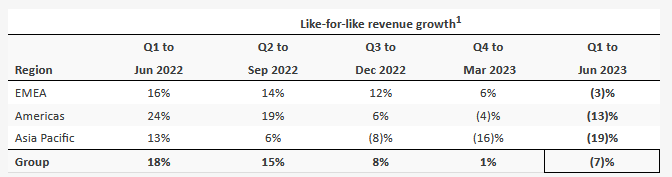 "Like-for-like revenue declined 7% reflecting a more challenging environment"
