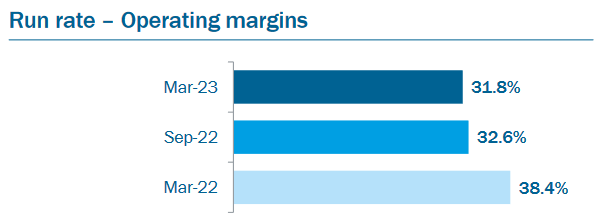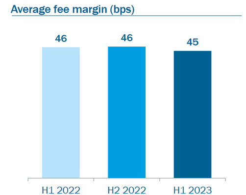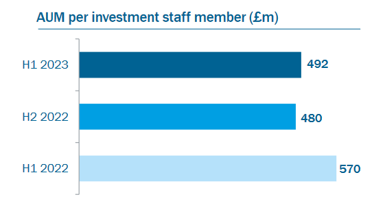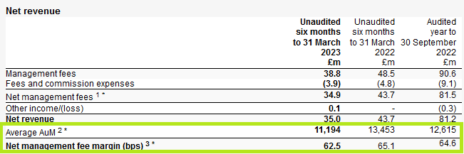 Fortunately, net outflows have slowed, dropping to just £32m during the period, compared to £400m during H1 last year (and £1bn during FY22).