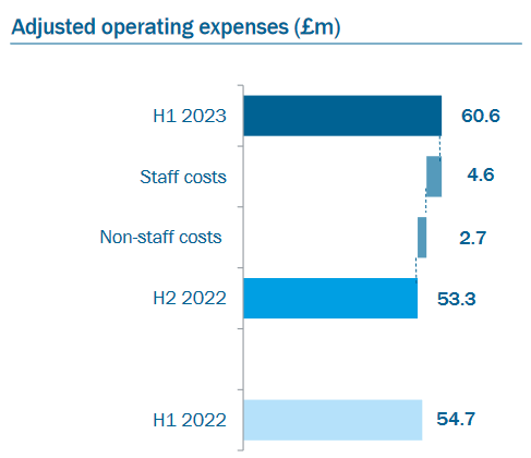 Adjusted operating costs rose from £54.7m to £60.6m, with the increase including £4.6m of additional staff costs: