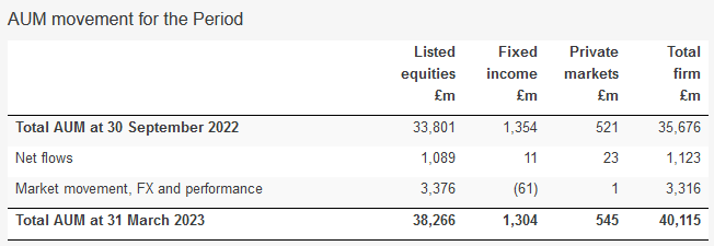 As a result, total assets under management to £40.1bn, up from £35.7bn at the end of September. These inflows were almost entirely into listed equity products: