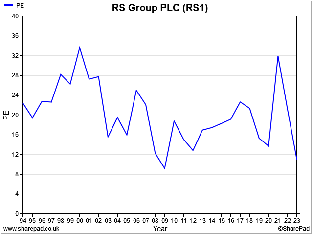 Assuming that the economic outlook doesn't get too much worse, I would guess that RS shares could be quite reasonably priced at under 700p. The last time the company's P/E ratio was this low was in 2009/10, according to SharePad.