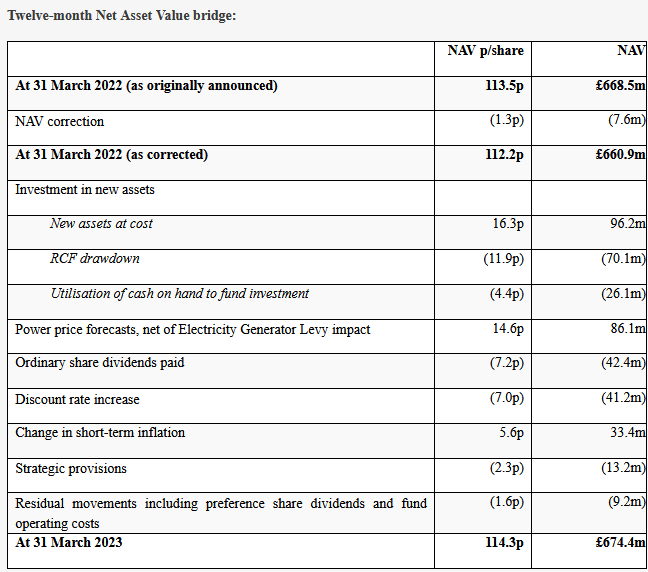 With the shares trading at a discount to NAV, management believes the market is undervaluing these assets. I have no idea whether this is true, or whether the impact of higher interest rates (reflected in the discount rate increase above) means that these assets are worth less than they might have been previously.