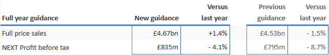 "We are upgrading our full price sales guidance for the full year by £137m and our full year profit guidance by £40m to £835m."