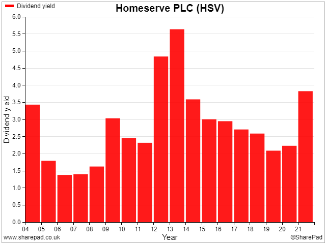 I think right now could be one such opportunity. Homeserve's forecast yield of 4.3% is well above the level seen in recent years and looks attractive to me, given the company's dividend track record.