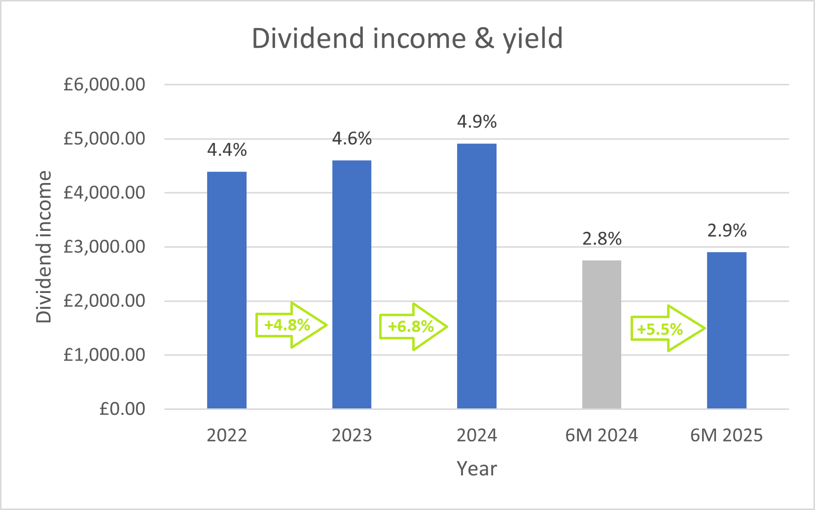 The portfolio's rolling 12-month yield of 5.3% is comfortably above the FTSE 100 average of c.3.5%.