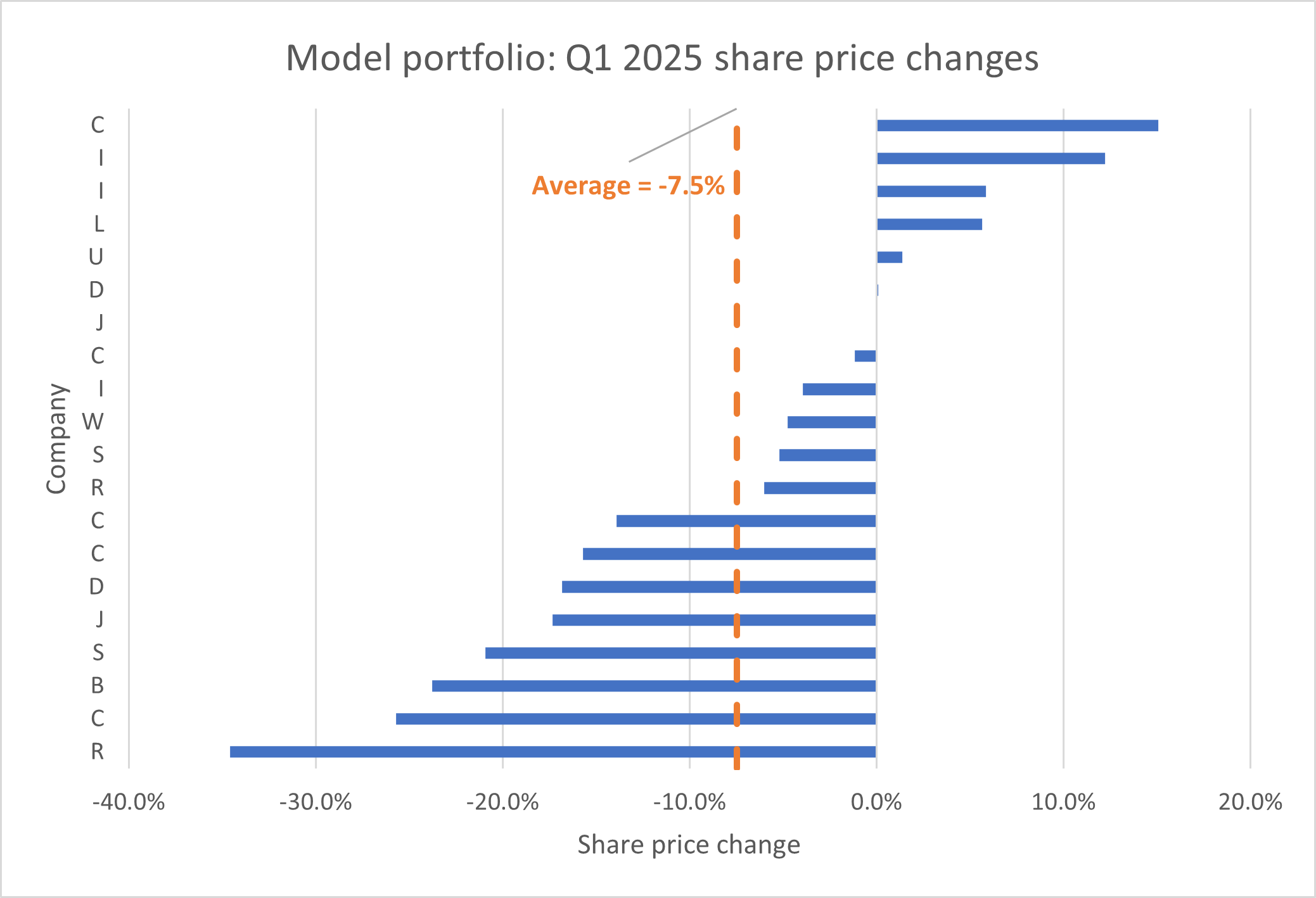 Here's a snapshot of the changes seen during the first quarter – the average share price in the portfolio fell by 7.5%: